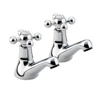 Bath pillar taps (chrome plated brass) with ¼ turn ceramic disc headworks with single lever operating members. The product is supplied with metal backnuts. Maximum working pressure 5.0 bar. Maximum operating temperature 60°C.