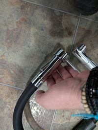 Range of single-hole, multiple outlet, swivel, combination tap assemblies (brass bodies - various finishes) a quarter turn ceramic disc controlling the flow to the swivel arm with a dome type operating member and a ceramic cartridge with a single lever controlling the flow to the pull-out spray outlet incorporating a plastic aerator. The spray outlet incorporates an approved check valve cartridge, however, the complete product has not been fully tested to demonstrate it provides backflow protection. Maximum working pressure 8.0 bar. Maximum operating temperature for boiling water pathway 98°C, for mixed water pathway 65C and purified water pathway 85°C