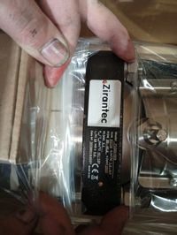 Zirantec logo, model and product information on data plate fixed on pump bracket. Flow arrow on body.