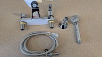Deck mounted, two-hole, single outlet (fixed) combination tap assemby (brass body, various finishes - see model), incorporating ¼ turn ceramic disc headworks with single lever operating member. The spout outlet incorporates a self-cancelling diverter to shower outlet with Type HC device (verified by test - suitable for backflow protection against Fluid Category 3) and a plastic aerator. The products are supplied with metal back nuts. Maximum working pressure 10.0 bar. Maximum operating temperature 60°C.